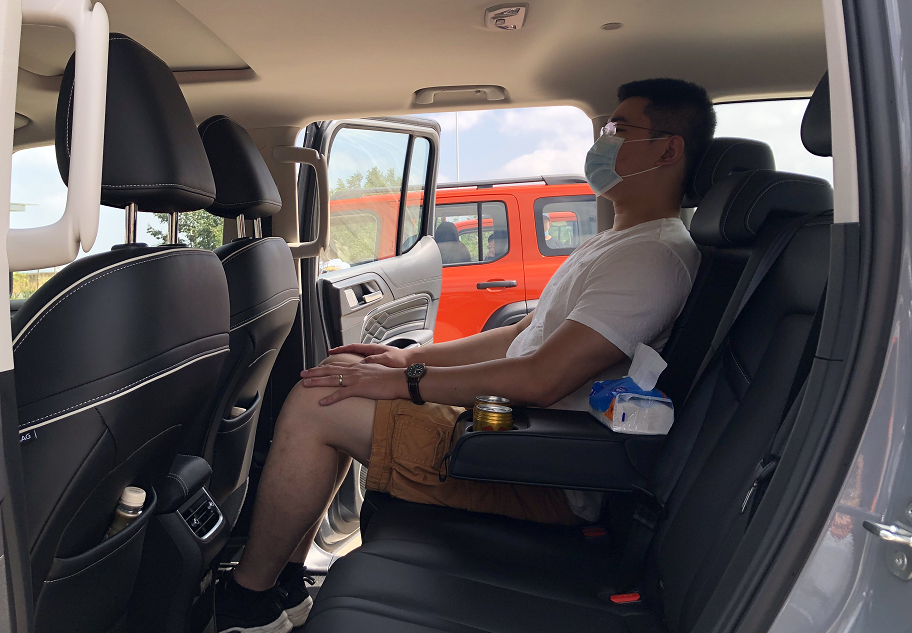 空间方面,前排保持圈哥185cm,95kg的坐姿,后排空间如图。以2750毫米的轴距,外加非承载式车身对车内高度的侵占,这样的空间表现实属惊艳。并且前后排座椅填充物都偏柔软,真皮材质细腻透气,舒适度非常令人满意。如果非要鸡蛋里挑骨头,那么坐垫长度还能适当加长一些,尤其是前排。