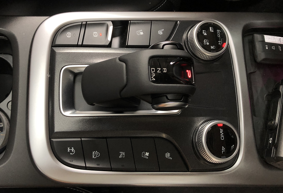 中央扶手区域集成了大量实体按键,5种驾驶模式,轻松应对各种路况。即使是城市版,低速四驱也没有缺席,自带的低速扭矩放大可以使车辆在陡坡上如履平地。坦克调头也毫不意外的出现,它能有效降低1.2米调头半径,在一些狭窄的路段非常实用。同时,令人欣慰的主副驾驶座椅通风也出现了,这在本次长途旅行中着实把前排舒适度提升了一大截。