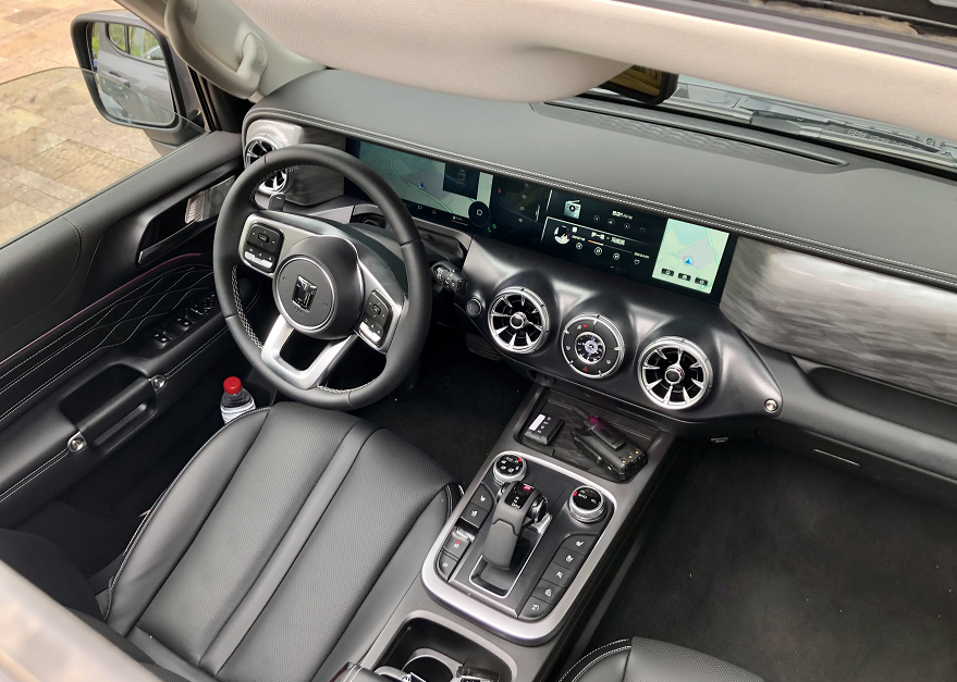 悬挂的表现是这台车给圈哥留下印象最深的两点之一,不同于以往的硬派越野车,坦克300城市版整体底盘质感厚重,有高级感,且并不生硬。行驶在铺装路面时,车内感觉与路面有明显隔绝感,这不同于宝马那种偏韧性的厚重感,而是感觉驾驶舱与地面之间隔了一层厚重的橡胶,震动和噪声都被很好的隔绝,舒适度非常高。圈哥相信,除了底盘调校功力,这还与米其林primacy轮胎也有非常直接的关系。