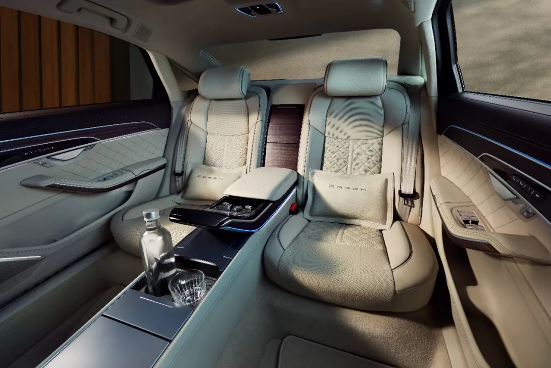 而在车内后排的中央扶手上、可发光的门槛饰条、头枕上等最显著的地方,都恰到好处的点缀着“Horch”标识,尽可能让乘坐者在车内也体验到尊崇身份和更强的专属感。