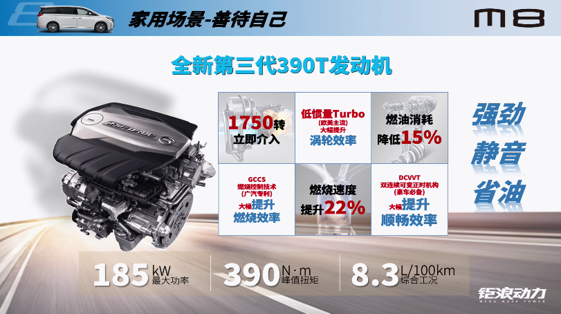 最后在动力方面,新车将继续搭载2.0T涡轮增压四缸发动机,采用了GCCS燃烧控制技术等领先发动机技术,其最大功率为185千瓦,最大扭矩390牛·米,与之匹配的是8速手自一体变速箱,百公里综合油耗低至8.3L,很好的兼顾了动力性与燃油的经济性。