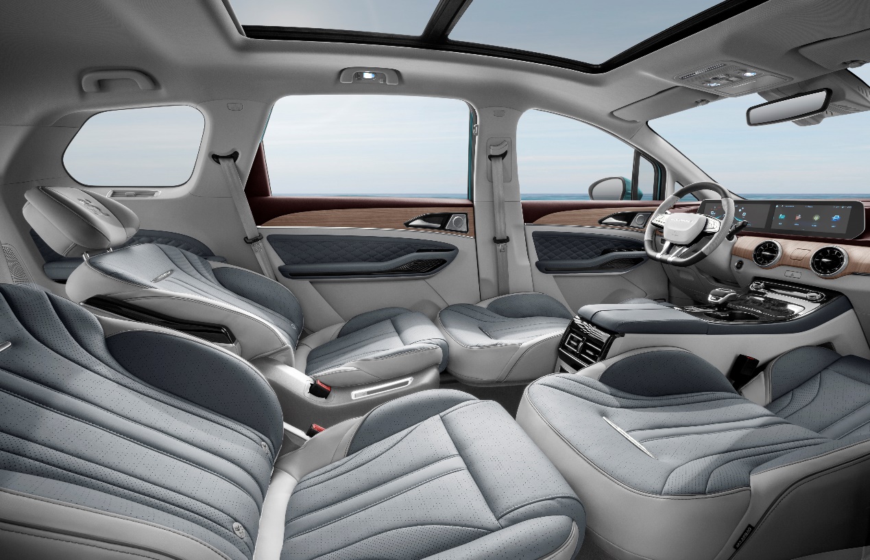 中排座椅,前后左右可调,前后滑动200mm,横向移动合计160mm,两张座椅可实现合并,出行方便照顾子女。二排座椅多功能调节配合左右可调睡眠头枕,轻松解锁一、二排座椅180°接平休息模式,独有的“游艇躺”享受,打造如头等舱一般超越合资产品的乘坐体验,可躺可睡舒适尽显,开创行业先河。充裕的三排乘坐空间及舒适坐姿,靠背可调节,第三排可4/6全平放倒,拓展超大储物空间。