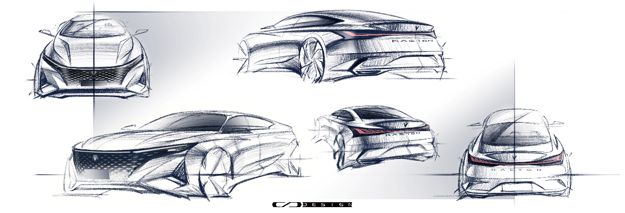 从设计草图可以看到,锐程PLUS整体风格前卫大气。全车运用打破束缚的生命体为灵感进行设计,格栅从上而下渐变融入车身,突破了传统格栅的界限,既是对长安家族化的传承,也是对传统的创新。前格栅采用了极具未来感的无边界渐进式布局,内部搭配点阵式设计元素。狭长犀利的前大灯巧妙与大尺寸前格栅融为一体,不仅增加了辨识度,也拓展了前脸的视觉宽度,营造出稳重、低趴且蓄势待发的视觉效果。