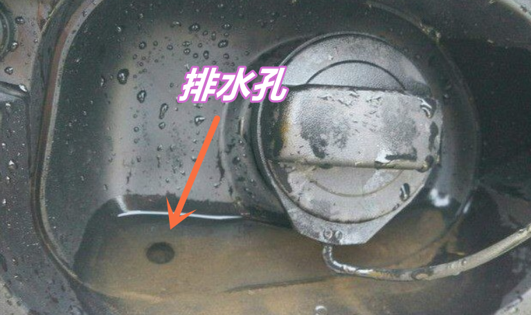 任何一辆汽车,油箱盖打开后,都可以看到一个小孔,这个小孔的作用可大了,它目的是给汽车油箱排水,因为下雨天,水都会顺着油箱盖缝隙流到里面,如果没有这个小孔排水的话,很可能导致水分渗透到油箱内部,从而引发发动机故障,有一定报废风险。所以大家千万牢记要定期清理油箱内的排水孔,以免造成堵塞,否则发动机会因油品进水而损坏。