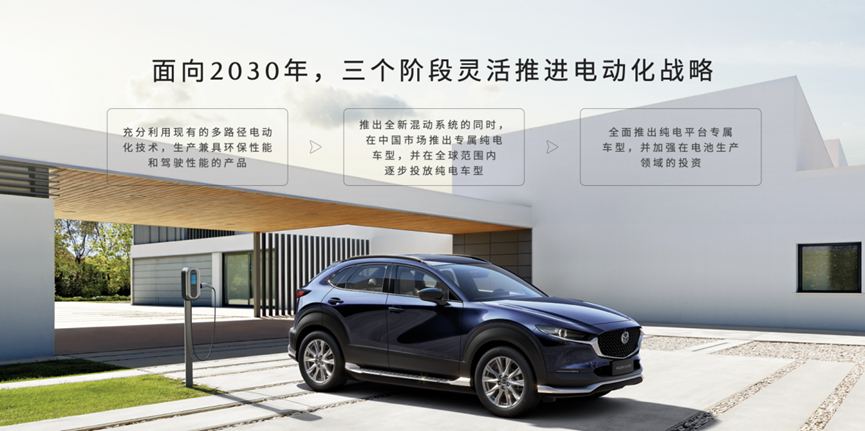 第二阶段,马自达将推出全新混动系统的同时,在电动化高速渗透的中国市场推出专属纯电车型,并在全球范围内逐步投放纯电车型;