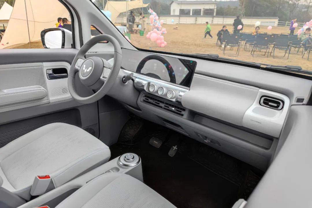 内饰方面,也是同级多数微型车做得不尽如人意的地方,五菱Air ev晴空显然下了功夫。浅灰色的配色自带轻奢感,相对大面积的软性材质被用在了中控区域,与同级车型的硬塑料形成鲜明对比,质感方面也自然更高。大尺寸联屏内饰赋予了新能源车应有的科技感,常用功能能由物理按键直接控制,整体好评。