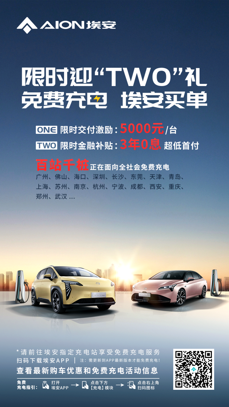 对于埃安来说,先以双重大礼吹响市场抢攻的号角,再加码“百站千桩免费充电”活动,不仅是回馈给消费者的福利,也是作为中国新能源头部品牌,抢攻市场的底气与实力。