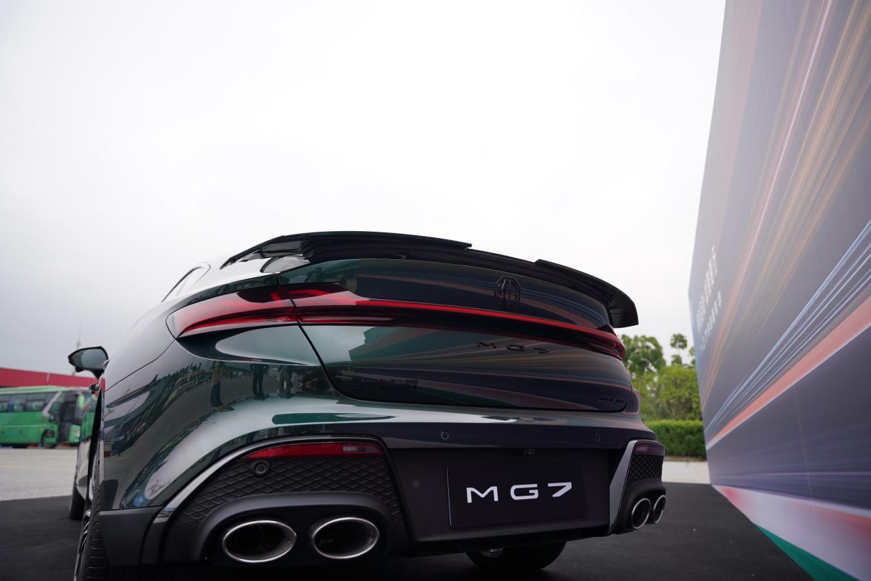 下了赛道回到P房,坐在一旁休息时,不自觉地打量起了停在一旁的MG7。脑海中只有一句话,“静如处子,动如脱兔。”因为它停在那的样子实在是太优雅了。MG7作为珠峰一体化架构下主打运动的轿跑车型,0.766的高宽比让阿贵君恍惚之间居然误以为它自带宽体套件了。