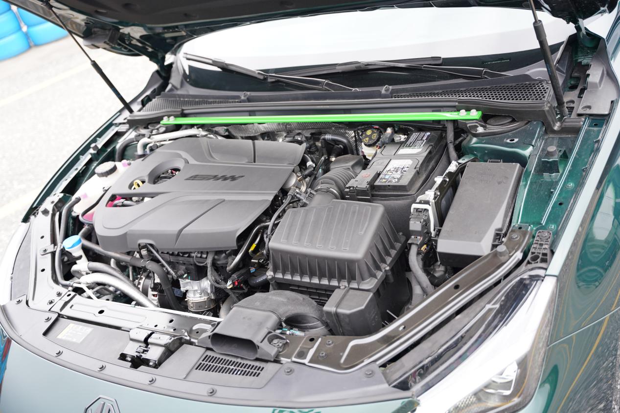 既然是在赛道中的试驾活动,那我们就先来聊聊MG7的动力表现。MG7有两个动力版本,本次试驾的是2.0T黑标版,其搭载的这台2.0T发动力能够迸发出261匹的马力。这让阿贵君在广东国际赛车场的大直道上冲上200Km/h时速时甚至感觉动力还有富余。上汽的这套9AT变速箱采用4组行星齿轮组嵌套的方式让尺寸更加紧凑,相比于8AT变速箱也有着更高的传动效率。在日常通勤代步的过程中由于档位更多,齿比更为接近,换挡的平顺性也能得到很好的保证。