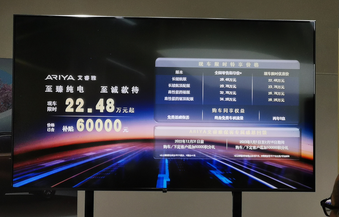 这次电池安全技术品鉴之旅相当于是一次满满的干货分享会。看得出来,ARIYA艾睿雅的电池安全有相当深厚的技术支撑,才能这样自信满满。最后还有一个彩蛋,就是截止至3月31日,ARIYA艾睿雅新购车用户可享限时购车优惠,其长续航版仅需22.48万元、长续航顶配版23.78万元、高性能四驱版26.78万元、高性能四驱顶配版28.28万元。当然还有其他福利。打算去看看么?