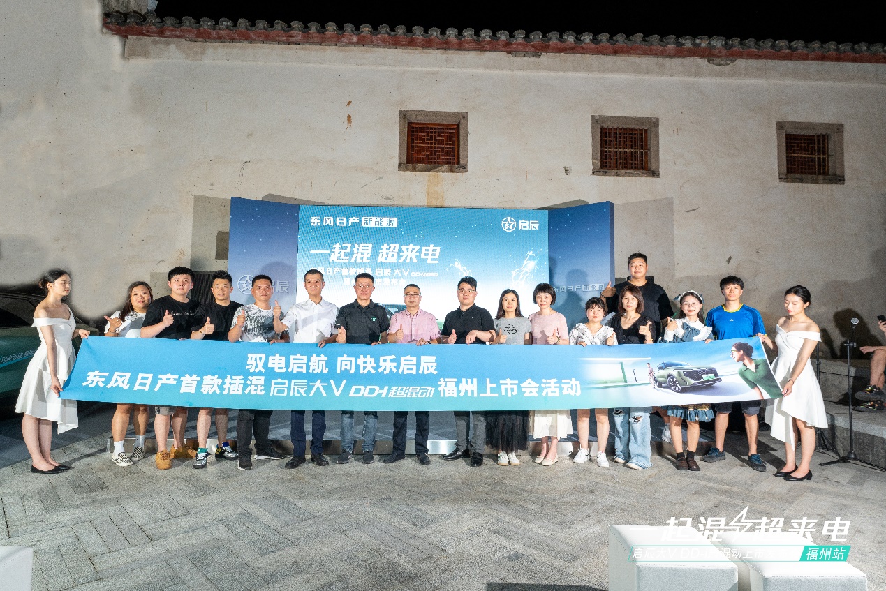 2023年7月15日,“一起混,超来电”东风日产首款插混启辰大V DD-i超混动福州区上市会在福州烟台山漫步街区-安澜广场举行。东风日产新能源启辰大V DD-i超混动官方指导价为11.89万元—14.99万元。