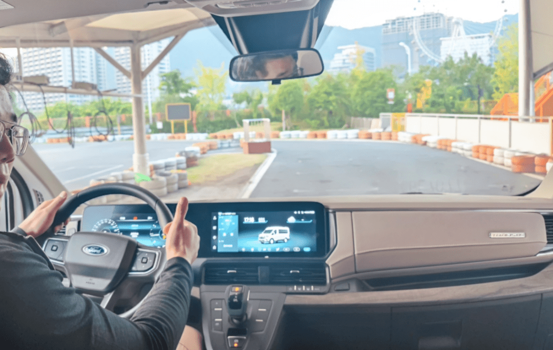 因为纯电动相对无聊,所以圈哥专门挑了2.3T柴油版试驾。车内的双联屏给人印象很好,完全没有以往乘坐的轻客那般原始,采埃孚8AT自动挡没有任何压力,挂挡踩油门直接就走。2.3T柴油机低扭可太强了,车辆起步只需要给一点点油即可,并且整个赛道内正常驾驶过程中,都能感受到柴油机在中低速状态下安静且强劲的扭矩把车轻松推着走。