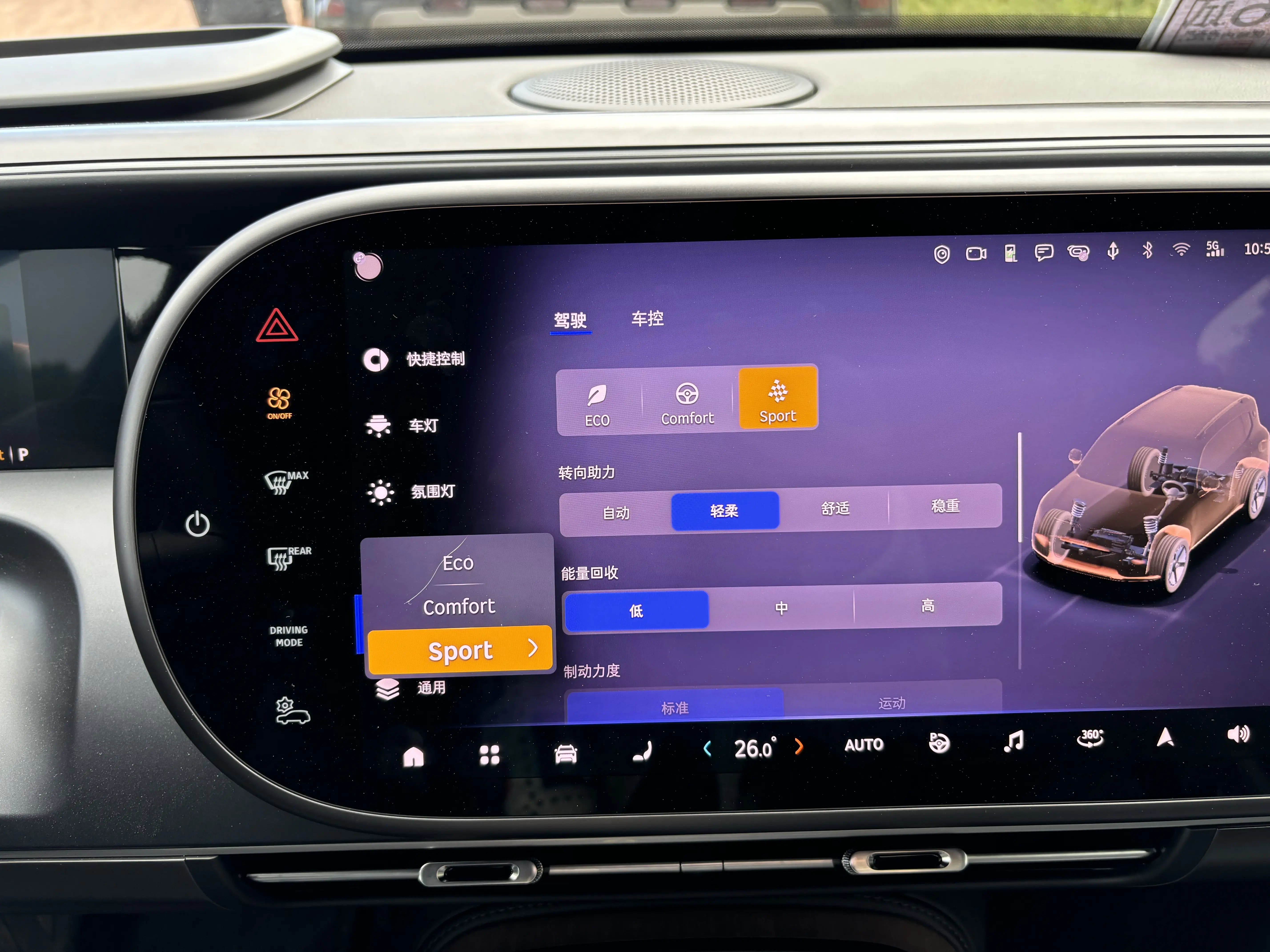 实际体验下来,精灵#5保留了smart品牌车型一贯以来的灵活性,虽然有大车的体量感,但驾驶起来是偏灵活讨巧的。并且这台车还提供了空气悬挂和CCD连续可变阻尼减震器,走烂路时也保障了舒适性。毕竟精灵#5自带越野属性,相信很多玩家入手后都会忍不住去野外嚯嚯一番。注意,精灵#5可不是样子货,提供多种驾驶模式选择,沙地、雪地、泥地、岩石、自适应5种全地形模式可以让你轻松应对复杂的路况。