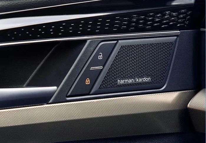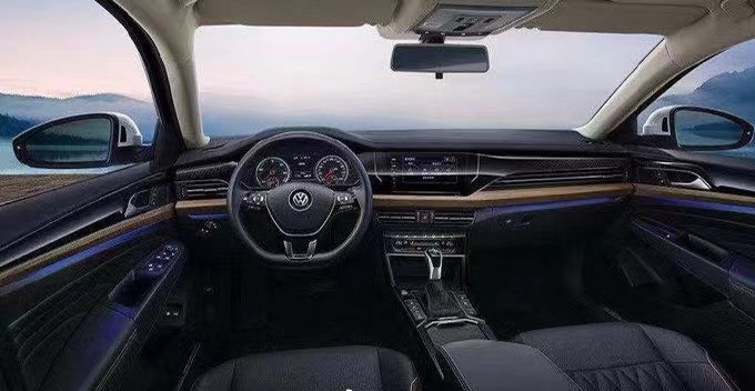 在车内,整体风格是大家熟悉的大众风格,不过融入了很多现代化的科技配置。首先车内配备了液晶仪表和液晶中控屏,空调控制也换上了触敏式按钮,车内的物理按键减少了很多。其次中控台以及门板上采用了大量的亮黑色饰板,展示出了非常前卫的科技氛围。并且还配备了哈曼卡顿音响,进一步提升其豪华感。