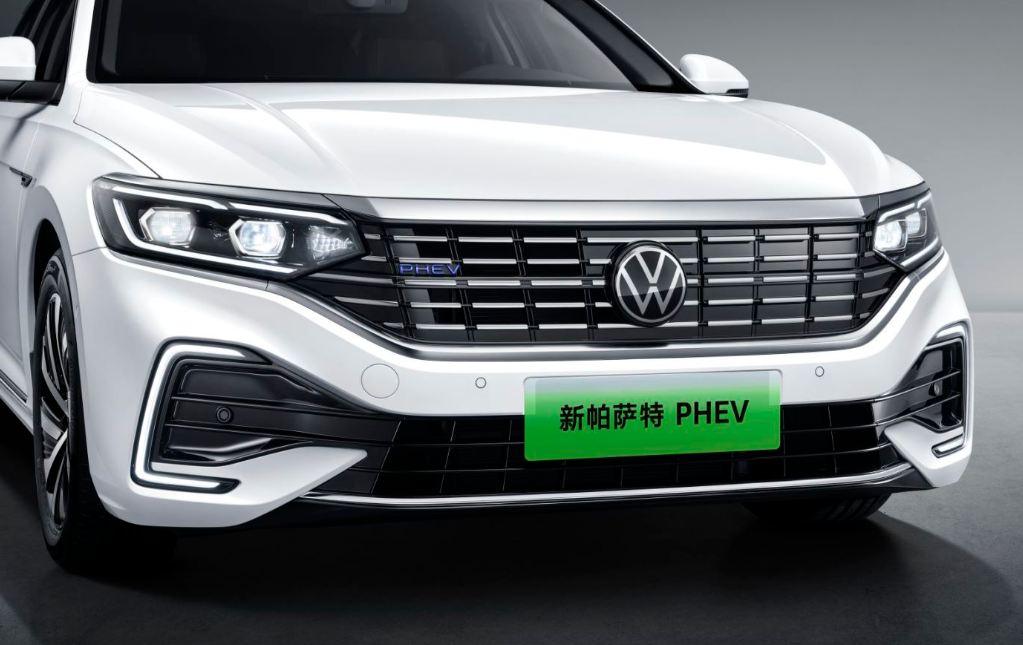 至于新帕萨特PHEV车型,前脸采用的就是线段式镀铬中网设计,不过没有了贯穿式灯带造型。下方的进气口是贯穿式设计,但并非蜂窝状中网设计,还是很容易分辨的。