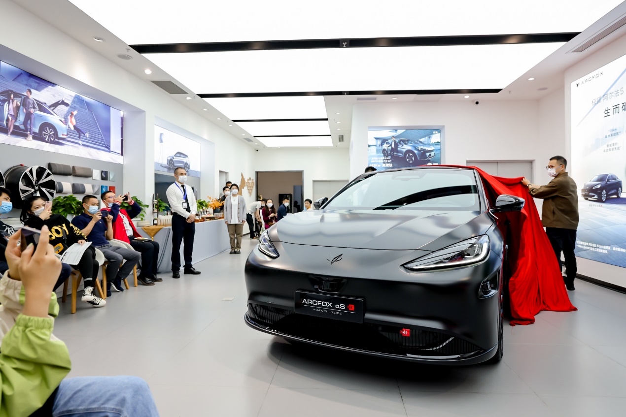 资料显示,这款车是极狐与华为合作的首款搭载华为HI全栈智能汽车解决方案的高阶智能豪华纯电轿车,可实现停车场、城区、高速的全场景点到点通行解决方案,有着颠覆性的体验,开业当天,极狐 阿尔法S全新HI版被嘉宾团团围住,成了全场的焦点。