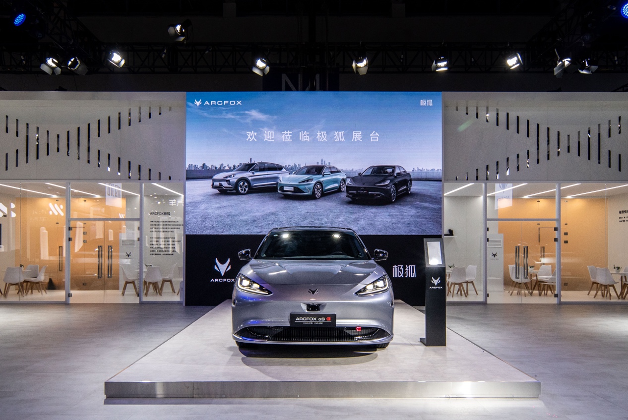 同台亮相的新一代智能豪华纯电轿车阿尔法S,是极狐品牌家族化序列的首款轿车产品。