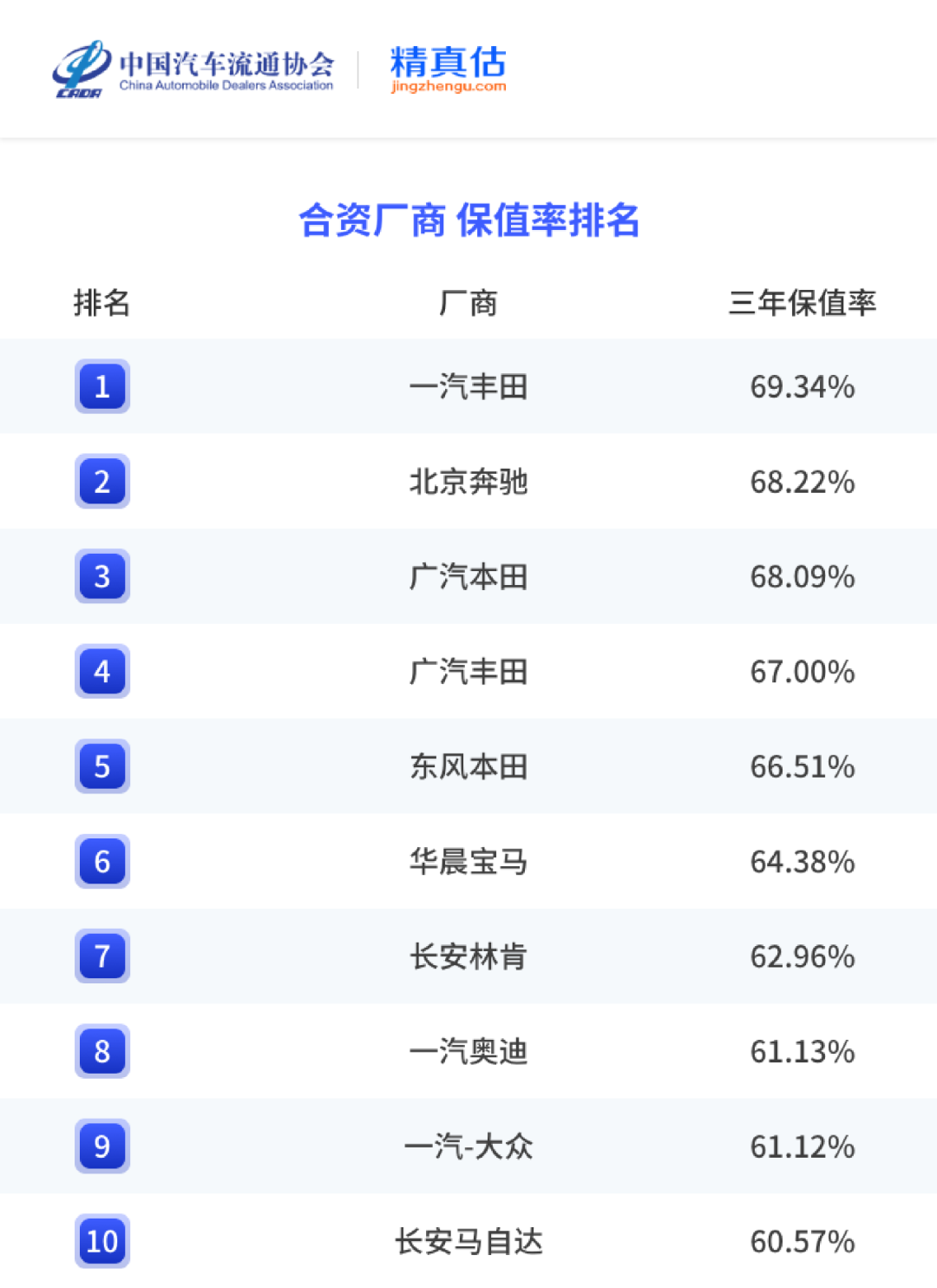 合资品牌保值率排行榜:日系品牌大受欢迎