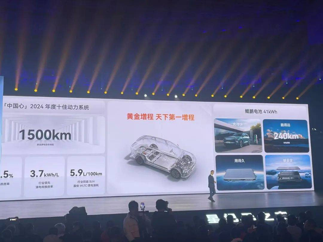 再看动力与操控,这也是全新星纪元ET增程四驱另一大亮点。该车搭载41.2度超大电池包,CLTC纯电续航240km,综合续航里程达1500km,充满一次电基本可以满足用户一周正常通勤,毫无续航里程焦虑。